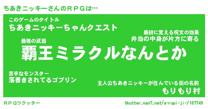| 伝説のあだ名 | 『封印されし竜騎士ちあきニッキー』 |