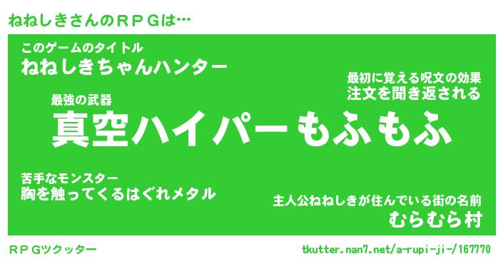 | ファンタジー風あだ名 | 『ネネフェル』『エターナルネネシキー』 |