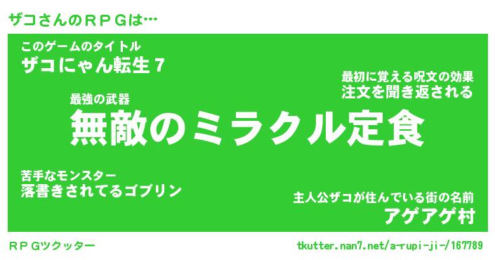 | ファンタジー風あだ名 | 『ザコフェル』『エターナルザコー』 |
