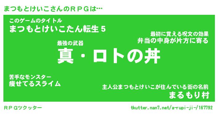 | 男性向けラノベタイトル風あだ名 | 『マツモトケイコアートオンライン』 |
