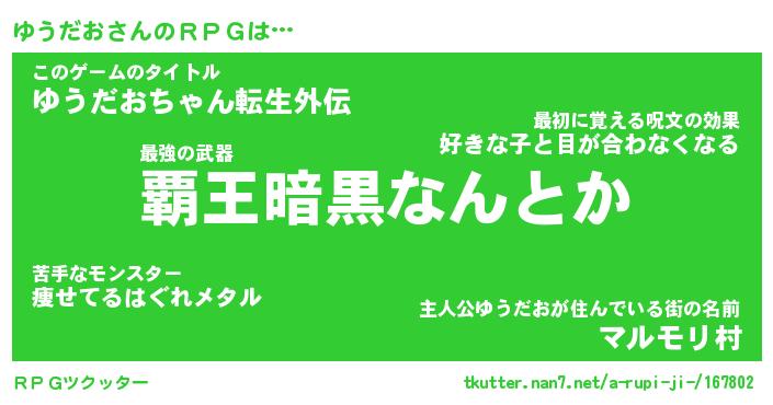 | 胡散臭い通販商品みたいなあだ名 | 『億万長者になれる水晶球…その名も「ゆうだお」』 |