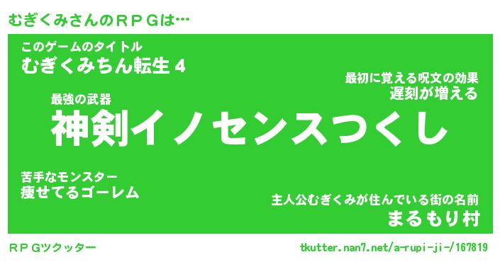 | 伝説のあだ名 | 『不死鳥のスナイパーむぎくみ』 |