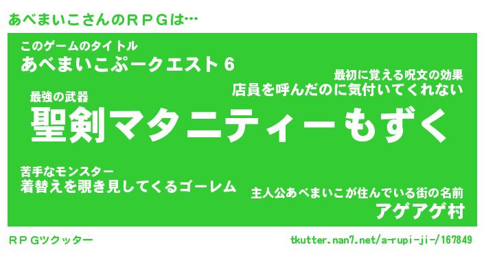 | 男性向けラノベタイトル風あだ名 | 『あべまいこの憂鬱』 |