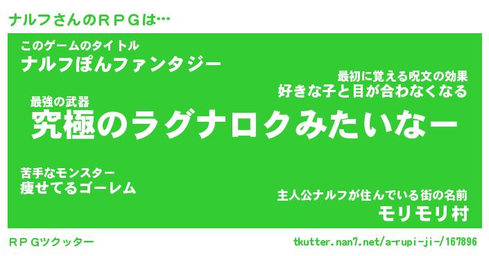 | ファンタジー風あだ名 | 『ナルフェル』『エターナルナルフー』 |