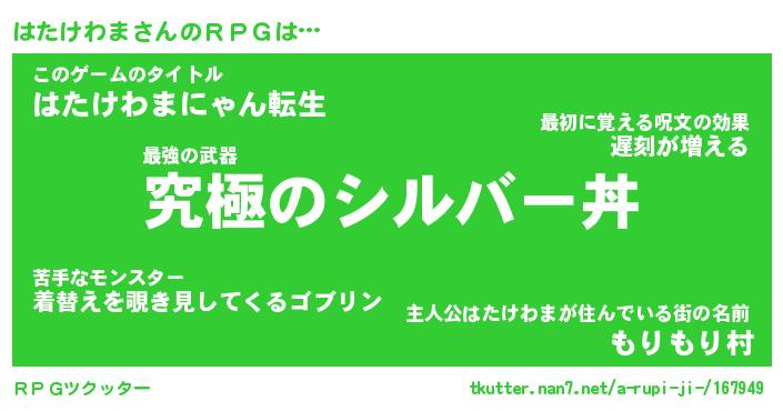 | ファンタジー風あだ名 | 『ハタフェル』『エターナルハタケワマー』 |