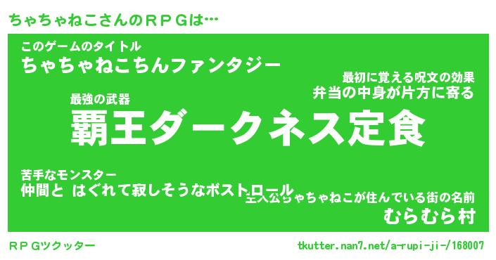 | ヒーロー風カッコイイあだ名 | 『スーパーチャチャネコ』『幻影騎士チャ』 |