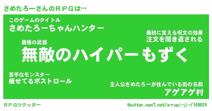 | 男性向けラノベタイトル風あだ名 | 『サメタローアートオンライン』 |