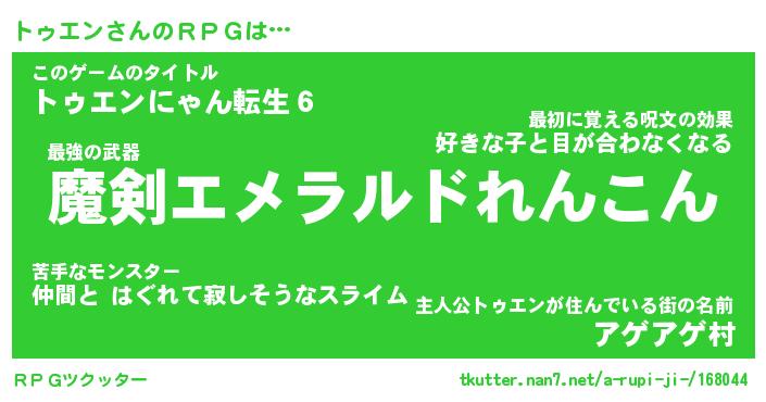 | 胡散臭い通販商品みたいなあだ名 | 『必ず成功する霊験あらたかなお札…その名も「トゥエン」』 |
