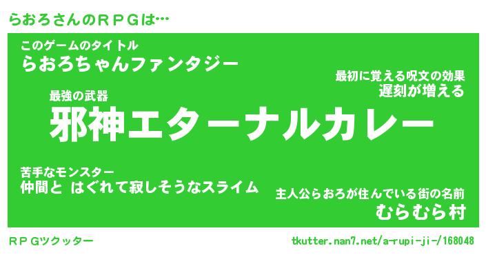 | ヘコむあだ名 | 『らおにゅー』『つくし』『らおを』 |