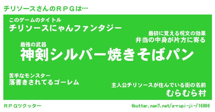 | ファンタジー風あだ名 | 『チリフェル』『エターナルチリソースー』 |
