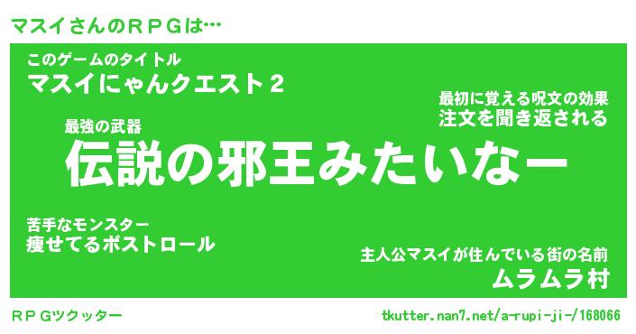 | 男性向けラノベタイトル風あだ名 | 『マスイの憂鬱』 |