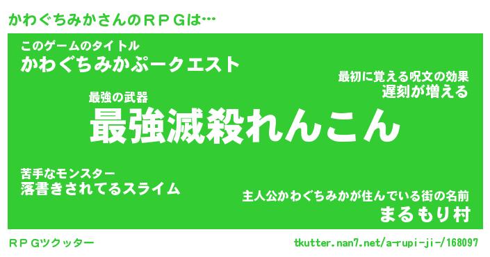 | 胡散臭い通販商品みたいなあだ名 | 『モテモテ間違いなし霊験あらたかなお札…その名も「かわぐちみか」』 |