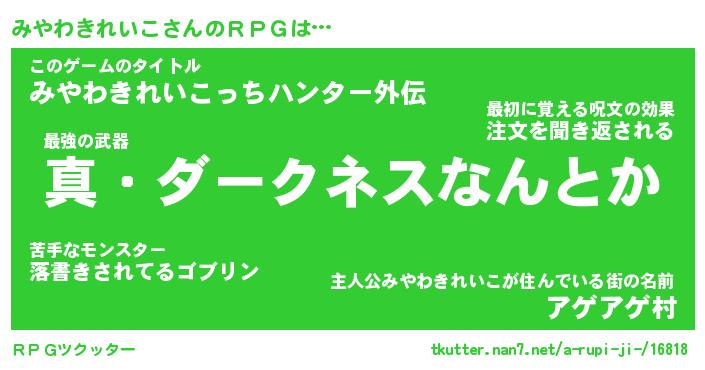 | 男性向けラノベタイトル風あだ名 | 『ミヤワキレイコアートオンライン』 |