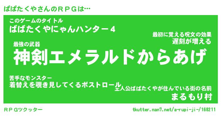 | ファンタジー風あだ名 | 『ババフェル』『エターナルババタクヤー』 |