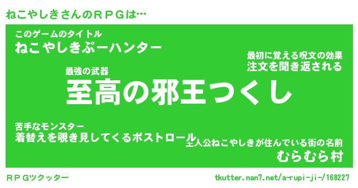| ファンタジー風あだ名 | 『ネコフェル』『エターナルネコヤシキー』 |