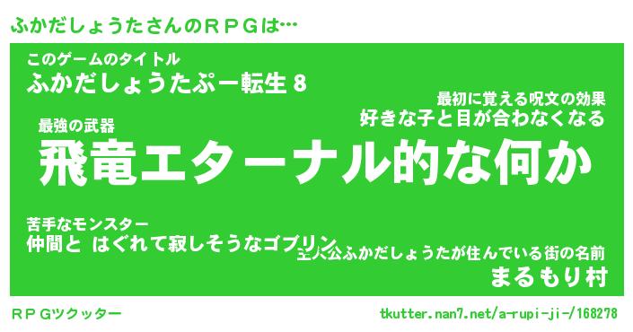 | 胡散臭い通販商品みたいなあだ名 | 『億万長者になれる水晶球…その名も「ふかだしょうた」』 |