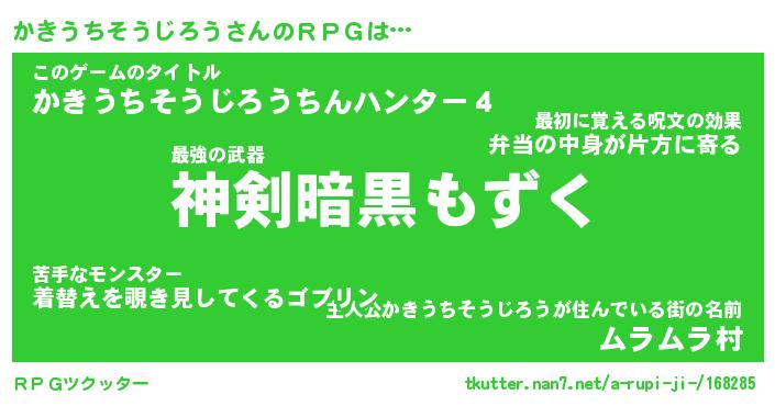 | 男性向けラノベタイトル風あだ名 | 『かきうちそうじろうの憂鬱』 |