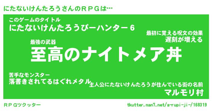 | 男性向けラノベタイトル風あだ名 | 『ニタナイケンタロウアートオンライン』 |