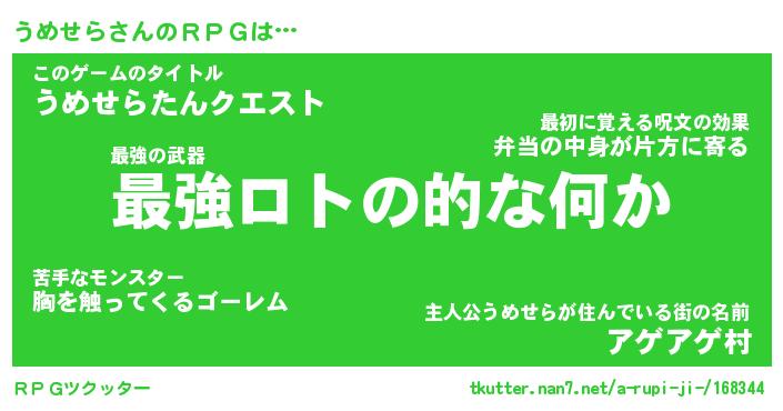 | 男性向けラノベタイトル風あだ名 | 『ウメセラアートオンライン』 |