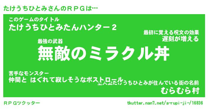 | 男性向けラノベタイトル風あだ名 | 『タケウチヒトミアートオンライン』 |