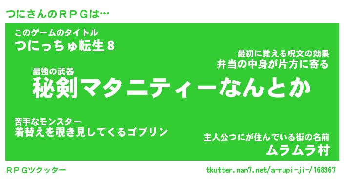 | 胡散臭い通販商品みたいなあだ名 | 『必ず成功する霊験あらたかなお札…その名も「つに」』 |