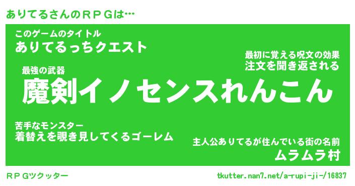 | 男性向けラノベタイトル風あだ名 | 『ありてるの憂鬱』 |