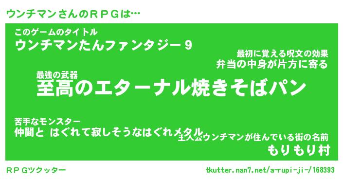 | ファンタジー風あだ名 | 『ウンフェル』『エターナルウンチマンー』 |