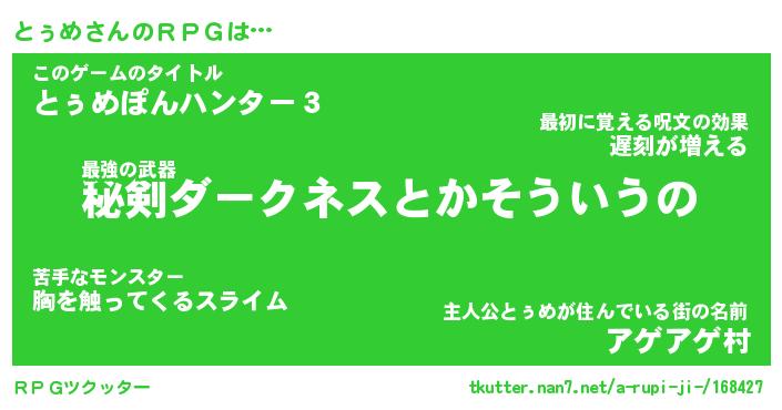| ファンタジー風あだ名 | 『トゥフェル』『エターナルトゥメー』 |