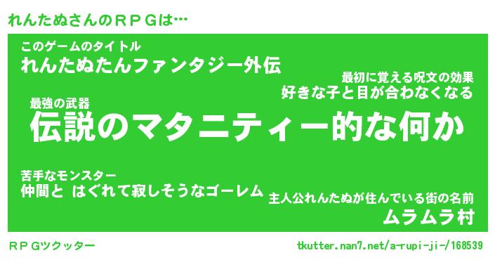 | ファンタジー風あだ名 | 『レンフェル』『エターナルレンタヌー』 |