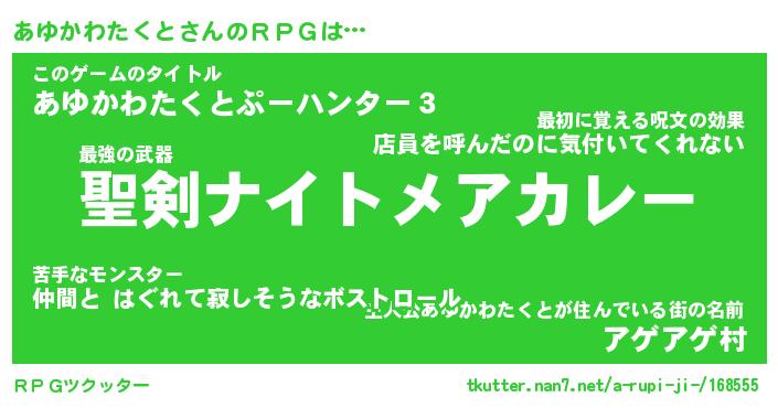 | 胡散臭い通販商品みたいなあだ名 | 『必ず成功する霊験あらたかなお札…その名も「あゆかわたくと」』 |