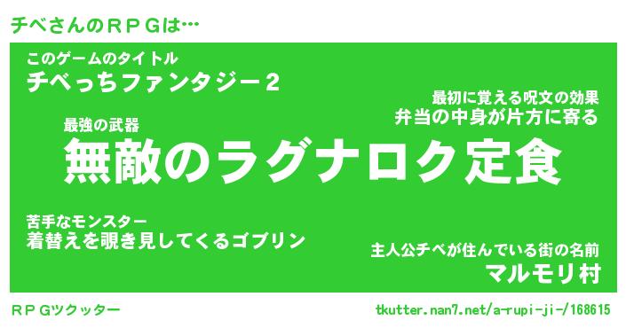 | 男性向けラノベタイトル風あだ名 | 『チベアートオンライン』 |