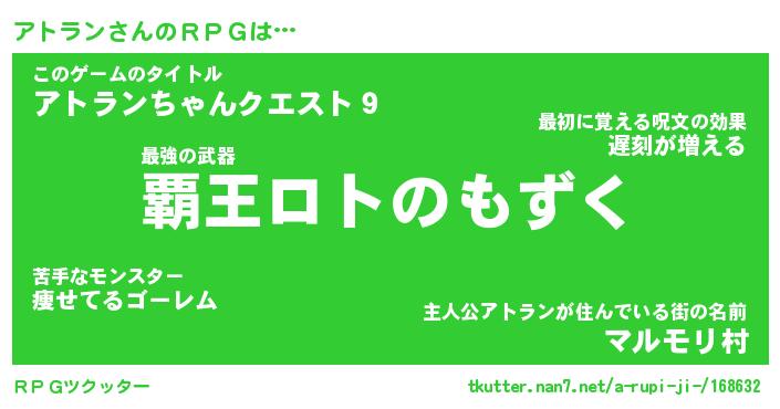 | 意味不明あだ名 | 『ペロリンアトラン』『永久保存アトラン』 |