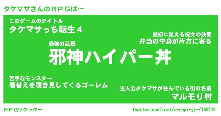 | ファンタジー風あだ名 | 『タケフェル』『エターナルタケマサー』 |