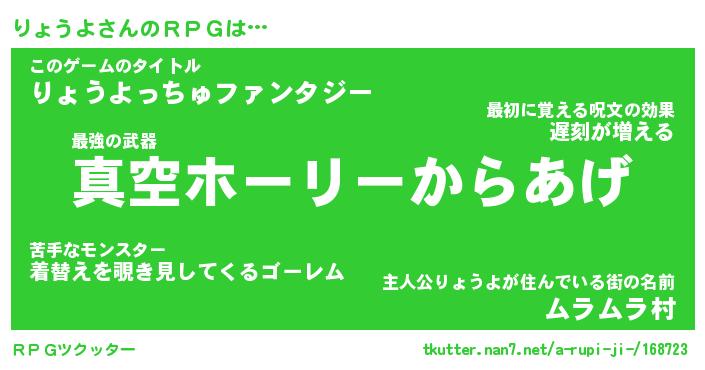 | ファンタジー風あだ名 | 『リョフェル』『エターナルリョウヨー』 |