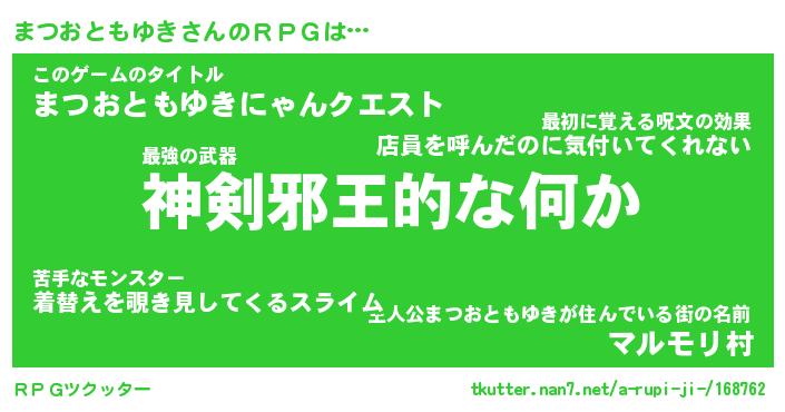 | 男性向けラノベタイトル風あだ名 | 『まつおともゆきの憂鬱』 |