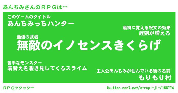 | 意味不明あだ名 | 『ペロリンあんちみ』『永久保存あんちみ』 |