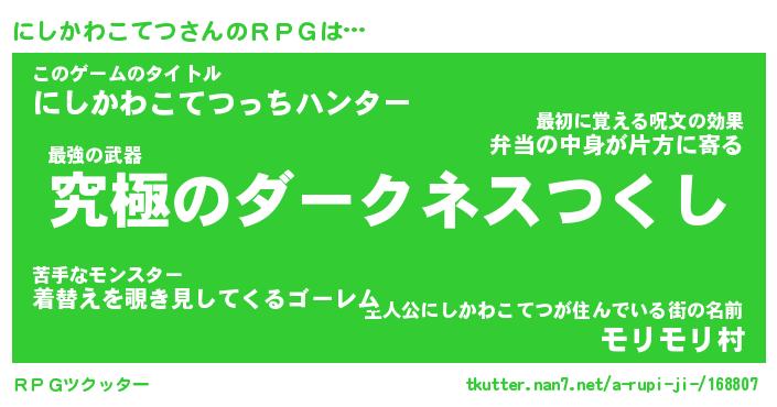 | 男性向けラノベタイトル風あだ名 | 『にしかわこてつの憂鬱』 |