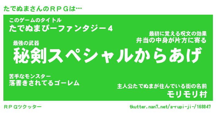 | 伝説のあだ名 | 『伝説の竜騎士たでぬま』 |