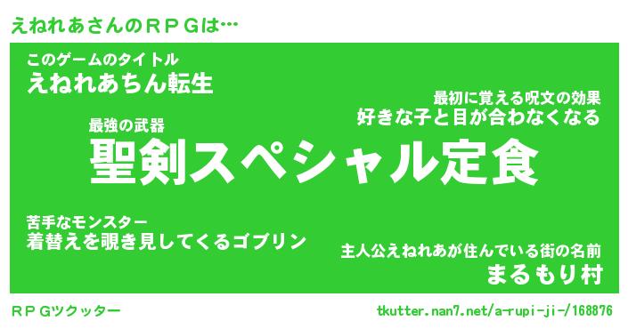 | 意味不明あだ名 | 『ペロリンえねれあ』『永久保存えねれあ』 |