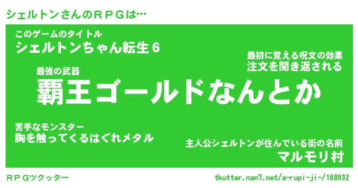 | 男性向けラノベタイトル風あだ名 | 『シェルトンアートオンライン』 |