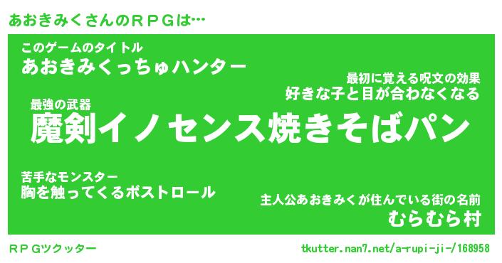 | 胡散臭い通販商品みたいなあだ名 | 『必ず成功する霊験あらたかなお札…その名も「あおきみく」』 |