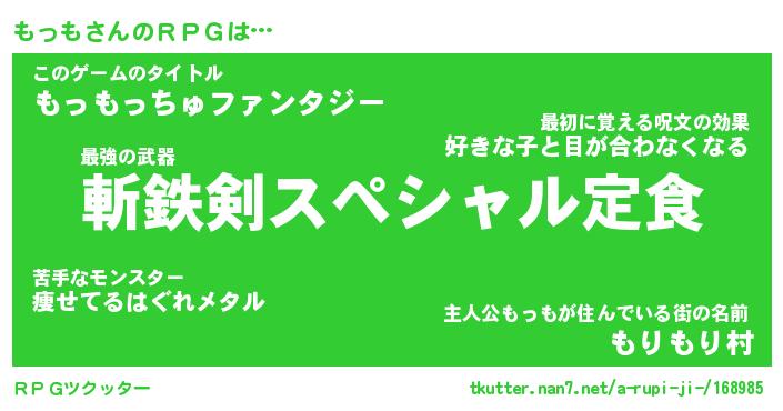 | ファンタジー風あだ名 | 『モッフェル』『エターナルモッモー』 |