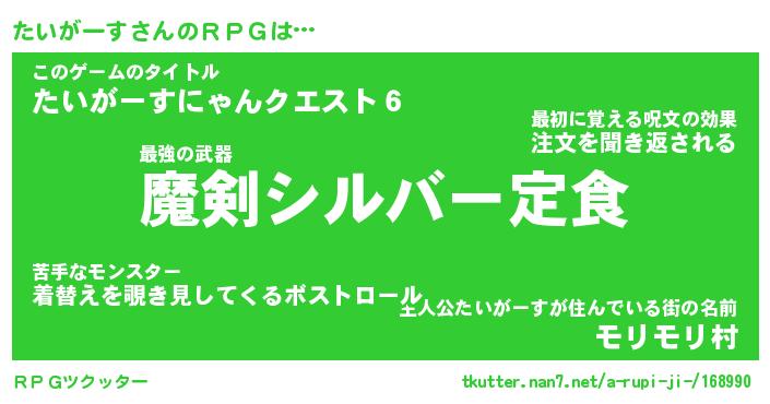 | 胡散臭い通販商品みたいなあだ名 | 『必ず成功する水晶球…その名も「たいがーす」』 |