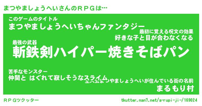 | 胡散臭い通販商品みたいなあだ名 | 『必ず成功するブレスレット…その名も「まつやましょうへい」』 |