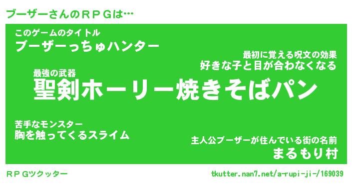 | ファンタジー風あだ名 | 『ブーフェル』『エターナルブーザーー』 |