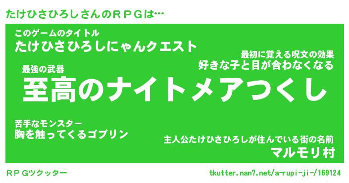 | 男性向けラノベタイトル風あだ名 | 『タケヒサヒロシアートオンライン』 |