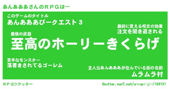 | 男性向けラノベタイトル風あだ名 | 『アンアアアアートオンライン』 |