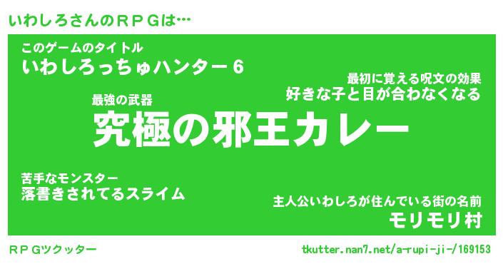 | 意味不明あだ名 | 『ペロリンいわしろ』『永久保存いわしろ』 |