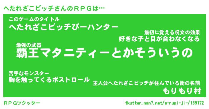 | 伝説のあだ名 | 『封印されしスナイパーへたれざこビッチ』 |