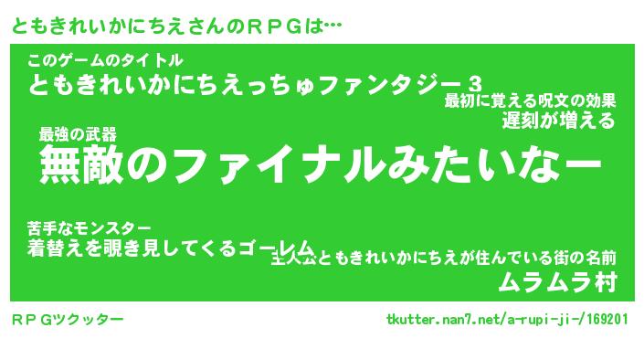 | 伝説のあだ名 | 『封印されし竜騎士ともきれいかにちえ』 |